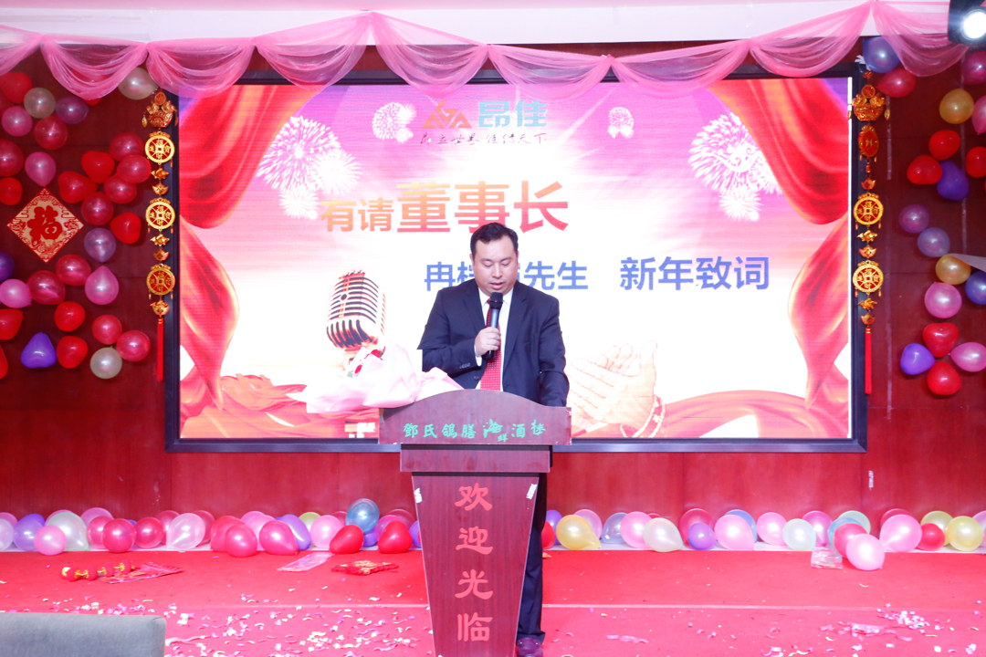 首先,由昂佳集團董事長冉檸凱先生發表新春致辭。冉總表示,時間如白駒過隙,轉眼間就來到了2019年,他謹代表昂佳科技有限公司向公司全體家人以及家屬、各界合作伙伴以及朋友致以新春美好的祝愿。