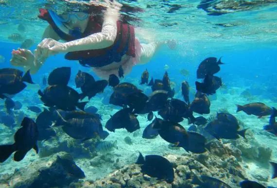 通過坐快艇來到海中的小島,這里水質真的比海邊要好得多,肉眼可見海中的小魚小蝦,你沒有見過的海洋生物,神奇的海底就可以近距離的展現在你面前